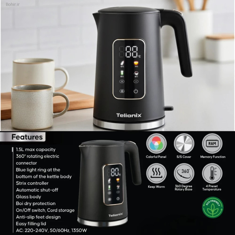 عملکرد و ایمنی کتری برقی تلیونیکس مدل TEK1400از برند TELIONIX